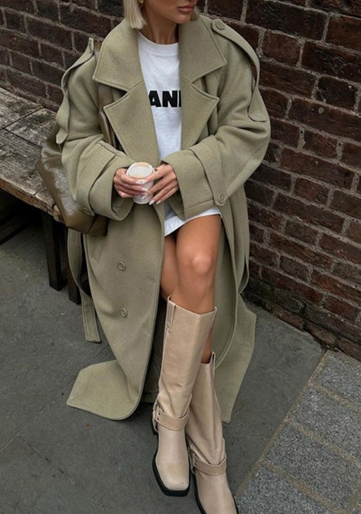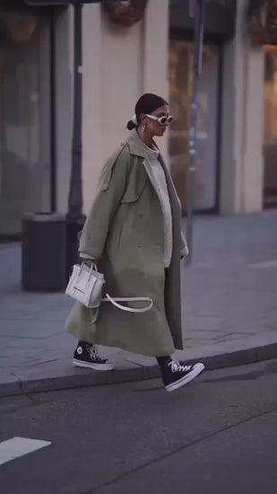This oversized trench coat redefines effortless cool with dramatic lapels, dropped shoulders, and a bold, relaxed fit—perfect for making a fashion-forward statement in any setting.